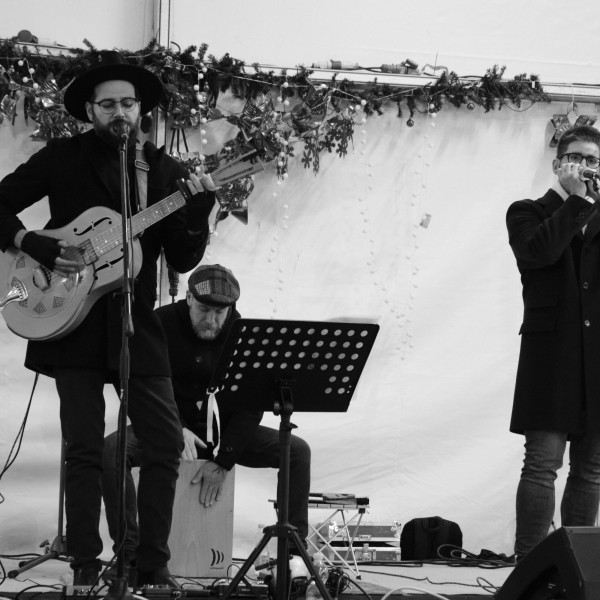 Tra la pista di pattinaggio e il profumo del brulè che saliva dalle casette di legno, l'atmosfera era davvero suggestiva ma... decisamente pungente! Per fortuna, ci hanno pensato le note avvolgenti della band a scaldare l'ambiente, rendendo il freddo molto più sopportabile.